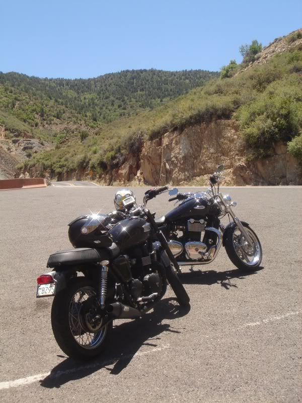After Prescott , we then turned onto AZ 89-A towards Jerome. The pass through the Mingus Mountains is a very entertaining piece of pavement. Because of the recent winter, the road was still pretty bumpy, but fairly clean, perfect for the skinny tires and soft suspension of my Bonneville. This road features lots of switchbacks and elevation changes though you are mostly heading up!